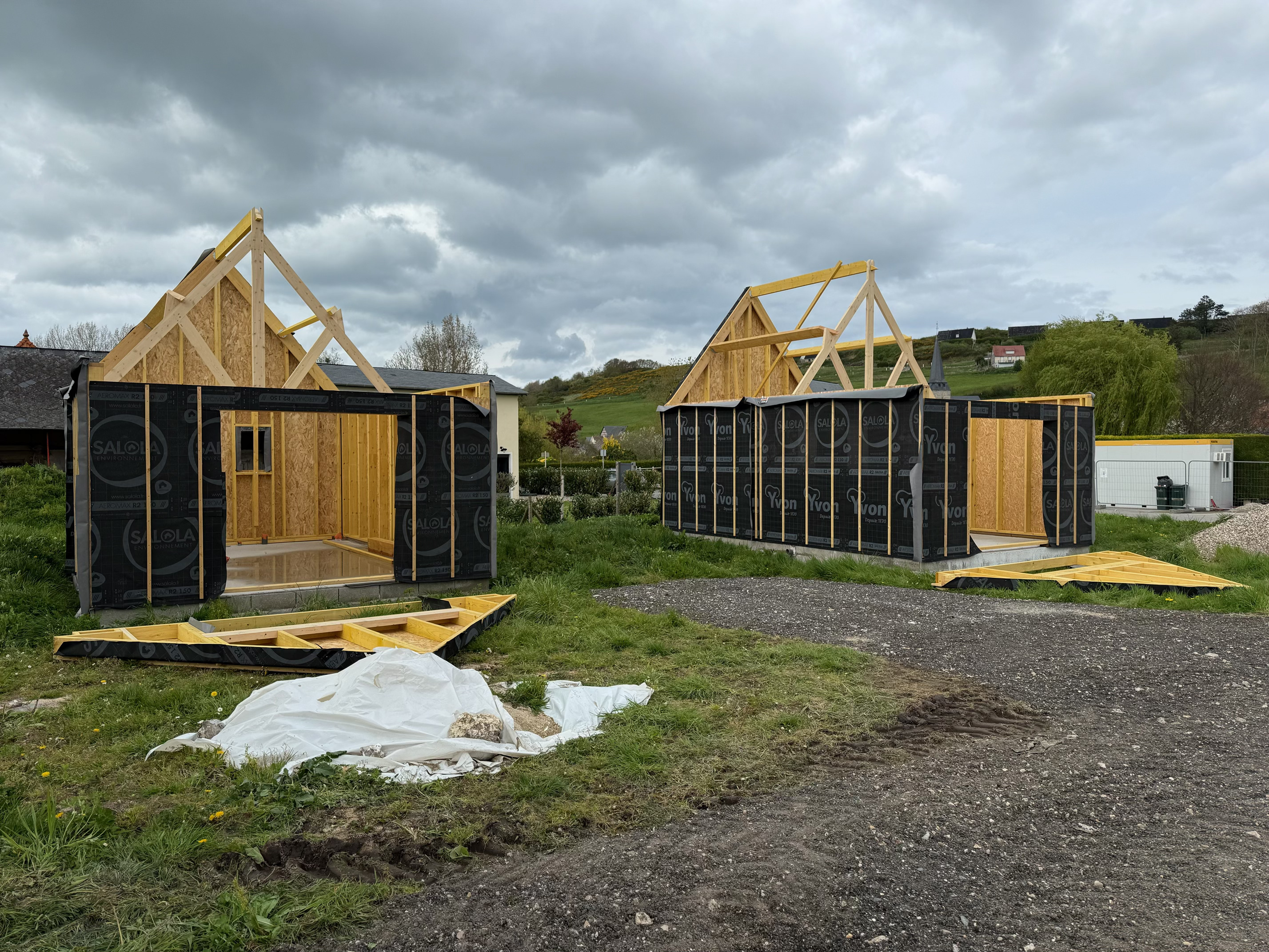 Construction de deux petites maisons évolutives en ossature bois d'une cinquantaine de mètres carrés. La conception des projets offre toujours la possibilité d'agrandir en fonction des envies.